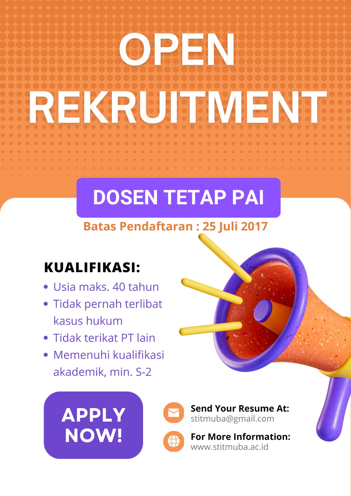 Open Rekruitment Dosen Tetap PAI